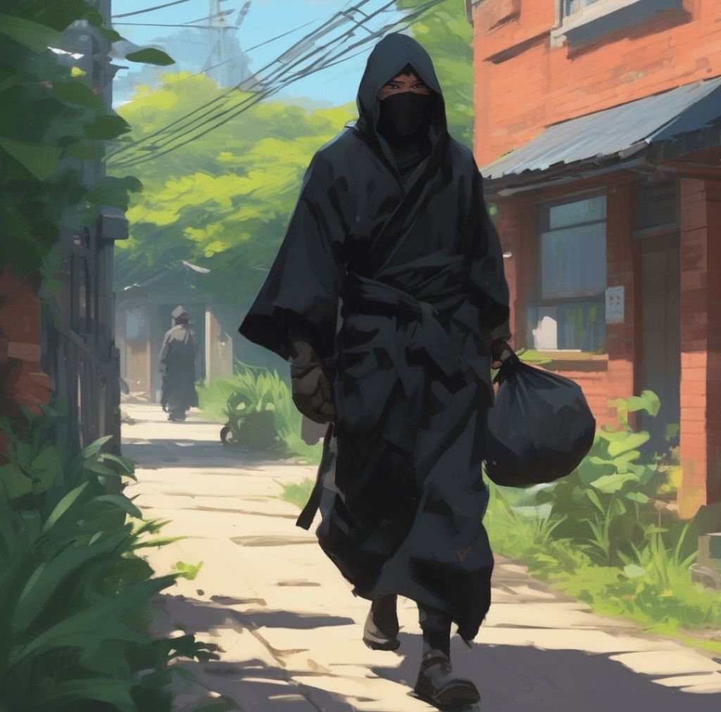 في زقاق مخفي، كانت المرأة واللص يتهامسان بمخططات خبيثة لتشويه سمعة أهل البلدة الفاضلين الذين يحسدونهم كثيرًا.