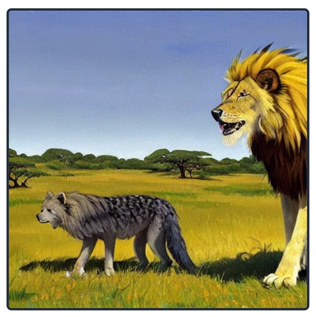 ذات مرة ، في غابة سحرية ، كان أسد شجاع وذئب ماكر أعداء. كلاهما يريد أن يكون حاكم الأرض. كل يوم كانوا يتآمرون ويخططون ضد بعضهم البعض. ولكن في يوم من الأيام ، حدث شيء من شأنه أن يغير علاقتهما إلى الأبد.كان الأسد متشككًا في البداية ، لكن الذئب وعد بأن يكون حليفًا جديرًا بالثقة. اتفقوا على تقاسم الأرض والعمل معًا لحماية الحيوانات الأخرى من الخطر. سرعان ما تعلموا أنه من خلال مساعدة بعضهم البعض ، يمكنهم تحقيق أشياء أكبر مما يمكنهم تحقيقه بمفردهم.2